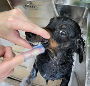 つまり理想は毎食後ですが、1日1回少なくとも2日に1回は歯を磨く必要がありますので、当サロンをオーナー様のワンちゃんが歯磨きの訓練をする場と思っていただければと思います。
